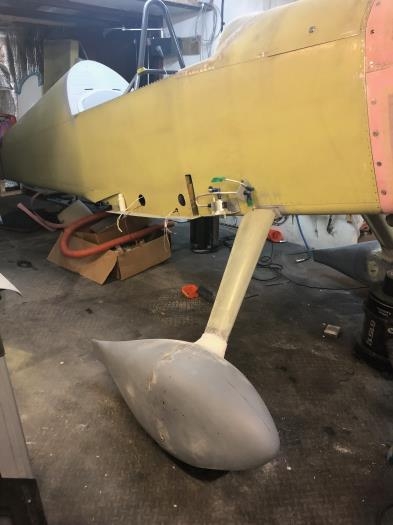Started on the wheelpant intersection fairings. Used expandinf foam as a former, then sanded to shape. 3 layers of glass and epoxy, more sanding, then epoxy/microfibre filling. More sanding tomorrow...