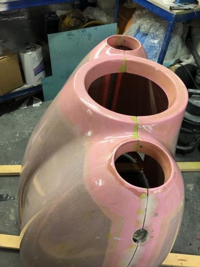 Fixed the lower cowl Skybolts. Sanded the cowling, then worked on the inlet holes and teh floating nutplates. Then 2 coats of slghtly tinned West epoxy, second coat applied 2 hours after the first. More sanding tomorrow, and hopefully no pinholes.