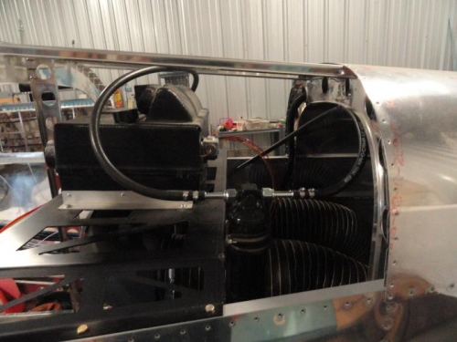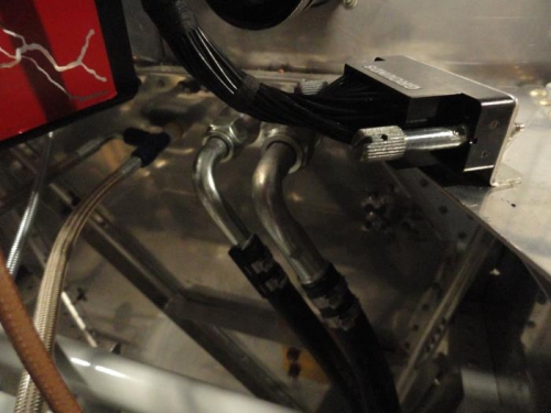 I finished the A/C hoses to the firewall and also between the condenser and evaporator. I tightened the fittings after installing them and clamping them onto the hose, and made adel clamps where necessary. I also began installing click-bond studs into the overhead.
