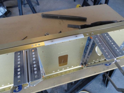 Deburred and assembled rear bulkhead, then riveted the parts together and added the snap bushings. Fabricated the UHMW wear strip (1/4" short, with rivet spacing adjusted to be correct for called out length so I can correct it later if necessary) and riveted it in position.