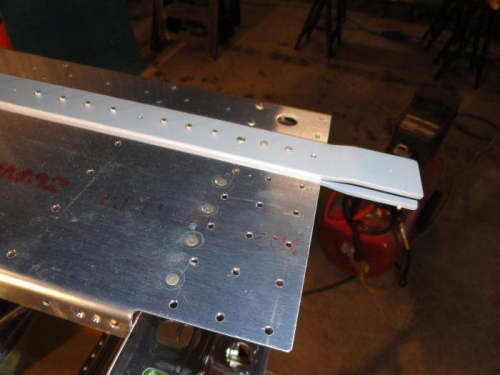 After disassembling all the rear ribs and spar bulkhead, I deburred all the ribs and the newly drilled holes in the spar. I also dimpled the rear outboard seat ribs per the instructions. Then I assembled the rear spar to the footwell ribs and riveted the outboard ribs per the instructions (with flush rivets to fit under the bulkhead parts). Next, I assembled the bulkhead parts and riveted them. Finally, I assembeld the rear seat ribs that had seat belt anchors and riveted the anchor parts together. I finished the day by clecoing the ribs in place, but I need to find out if the outboard footwell ribs get dimpled before riveting, so I may have to remove them before continuing.