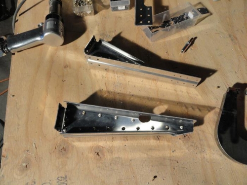 Myron assisted me in riveting the parts from the last session together. I did the universal heads with a gun a bucking bar while he did the nutplates using flush rivets set by a squeezer. Added center section rivet count; I'll add the wing spar rivets when I do the wings.