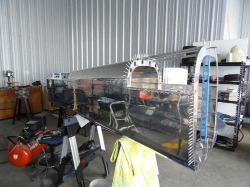 I actually started this on Saturday but was unable to reach all the rivets myself. Today, Jack Keegan showed up to help buck and we knocked out the rivets in no time. That's the tailcone finally completed.