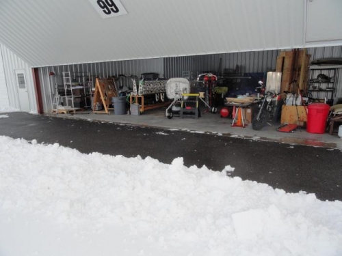 I actually spent a fair amount of time at the airport today, but much of it was spent shoveling the half foot of snow away from my hangar door before the airport plows came and bermed it in. Once done with that, I dimpled the floor ribs (that should have been done before they were installed; did I miss a step or did Van's leave it out?). Then I put the floor in place and clecoed around the perimeter. Next, I riveted the CS4-4 rivets on the floor face before calling it a day.