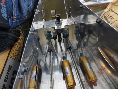 Fabricated the cushions for the fuel filter and pump and installed them with Gorilla Glue. Bolted the Flow-Scan in place and placed the filter and pump in their locations. Starting at the elbows aft of the fuel selector valve, I fabricated the lines to the valve. Then I installed the swivel-Tee to the valve and fabricated the line to the filter. Next, I fabricated the short lines between the filter and pump and the pump and Flow-Scan. With those in place, I installed the clamps to hold the filter and pump. Finally, I fabricated and installed the return line and the line from the Flow-Scan to the firewall.