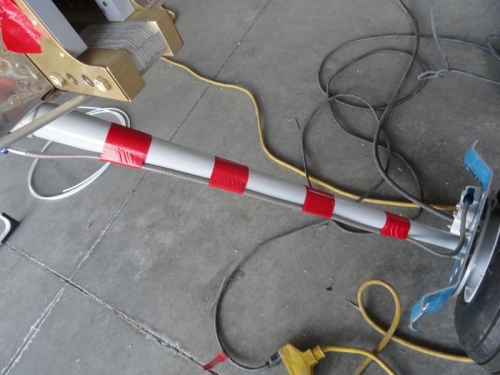 Then I ran the rudder cables from the back to the front. Since the instructions had had me install snap bushings as I progressed, this meant taking the bushings out, passing the cable throiugh the bushing, and then replacing the bushing. I loosely located the entrance and exit tubes but did not secure the ends until the rudder can be installed for a test fit.
