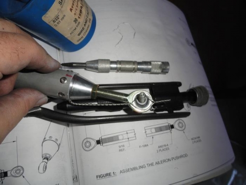 Made up the pushrods for the control system. The tubes are primed inside but not outside because these are easily inspectable though I am considering painting them before final assembly. You can see that I made up the capture safety wire loop in Image 1. The idler arm was also constructed and then the pitch pushrods were installed. I looked at the joint between the control sticks and the base but had some questions so I stopped there.