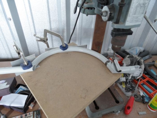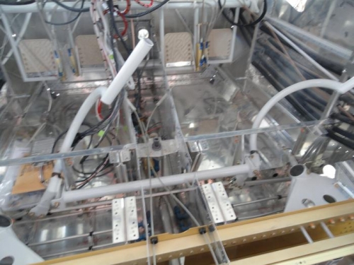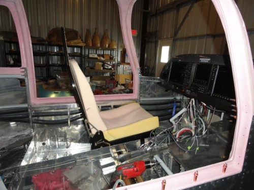 After some discussion on the VAF forum, I trimmed the bottom of the control sticks to fit into the bases. You can see that there is still a gap in the powder coating which is due to the exposed area starting at 2" while the max depth of the bases was about 1.5". I trimmed the bushings to fit in the crossmember and reamed them for an AN4 bolt, then trimmed the stick for the bushing, though I will have to do some more trimming around the webbing before sending them off to be re-coated. I assembled the sticks and pushrods and then temporarily installed the pilot's seat (the picture doesn't show a blanket I used to cover the foarm before sitting in it) so that I could check for interference with the panel and pilot. Checking with the grips supplied by Aerotronics, I determined I will have to cut the sticks down to about 3" length for the straight portion. With sticks and seat in place, work stopped and airplane noises ensued. Seriously, I checked and found that the most forward seating was comfortable but put full aft stick in my belly. 3 clicks aft was still comfortable and no stick contact at all, so I will probably adjust the rudders for that position.