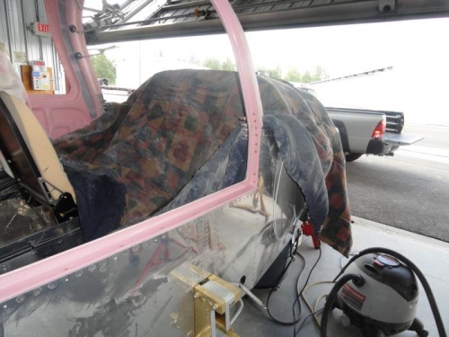 Now that I have experience on the pilot's side, I began cutting the opening for the copilot's side. I did a rough cut of most of the flange. With the flange out of the way, I could finish drilling the #12 and #19 holes and countersink them for their screws. Then I marked and trimmed the inner door half. It was a rather social day at the hangar as the lift I found for my neighbor was being installed and then several people stopped by to see my progress.