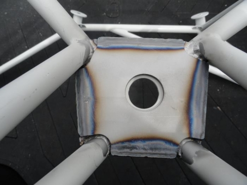 A couple of weeks ago I removed the nose gear assembly from the engine mount and took it and the doubler plate to a local welder with instructions to weld the plate in place around the perimeter. This will be sufficient to prevent the plate from moving laterally and damaging the engine mount tubes. The mount was then taken to Iron Horse Powdercoating to be redone (preventing corrosion ). Afterward, the modified mount will be reinstalled on the airframe.