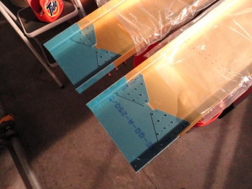 Next I clecoed on the spar extensions with their splice plates and match-drilled everything. Once done, I disassembled and deburred; the next step will be to rivet them back in place.