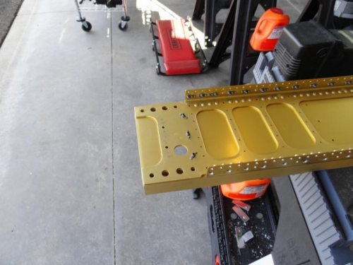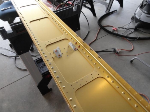 Counbtersunk all the screw holes per the plans, using a test dimple for the #6 and #8 screws to check for the proper depth. Riveted the nutplates at the root end of the spar. Fabricated the tie-down bracket, tapped it, and drilled it to the spar. Added the nutplates and then primed it before riveting the nutplates on. Finished by riveting the bracket to the spar and then bolting the aileron bellcrank brackets to the spar.