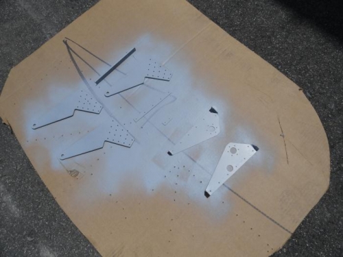Match-drilled all ribs to the left spar. Match-drilled flap hinge supports to their respective ribs. Disassembled all part and deburred all holes and edges. Primed the flap hinge supports and the bearing parts for the inboard rib. Use step bit to make 7/16" holes for pitot line and 7/8" holes for conduit for wire routing in the wing ribs.
