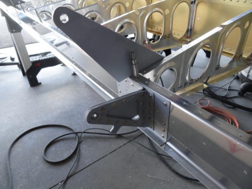 Riveted the left rear spar per the rivet callouts. Added the inboard aileron hinge bracket and reamed the 3/8" holes in the flap hinge supports.
