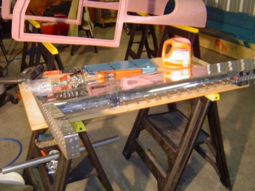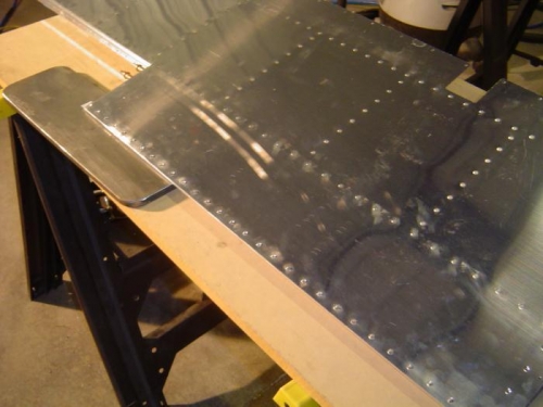 Trimmed excess proseal from trailing edge and cleaned it from the dimples. Back-riveted the trailing edge. Riveted the tip rib and the inboard overlap. Rolled tip and middle sections of the leading edge and riveted the tip section.