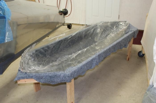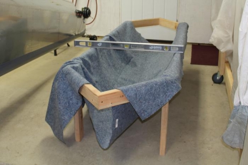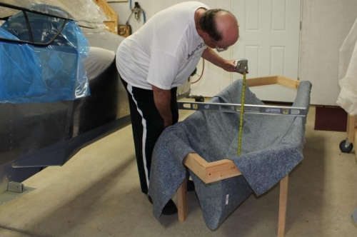 Test fit canopy in canopy cradle; less than optimal fit. Disassembled and redesigned canopy cradle into hexagonal shape. Reassembled and refined fit of cradle blanket. Tacked down and trimmed edges.