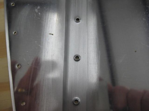 I removed the blue plastic covering inside both rudder skins and used a hot iron to remove strips from the outsides. Then I final drilled all the right rudder stiffeners using a scrap piece of plywood underneath so I wouldn't drill into my bench top. This allowed me to cleco everything down as I went along. Then I took it all apart and deburred the holes in the stiffeners and skin as well as the outer edges of the skin. I finished up by dimpling the skin and stiffeners. I didn't bother using the tank dimple dies for the stiffeners since the skin for the rudder is so thin and the stiffeners layed very flush with the skin as shown in the photo.