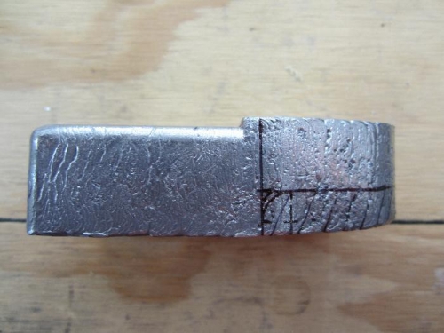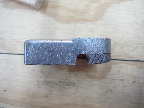 I trimmed the right counterbalance weight according to the plans. After measuring and marking, I used a 1/2 inch drill bit in the drillpress to get my radius then used a hacksaw to cut the rest off. I smoothed it all out using a file. All I can say about cutting lead is have lots of patience because it is slow going. I won't be trimming the left counterweight like this because some say you need the extra weight to counter the weight of the electric trim motor and trim tab.