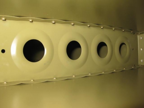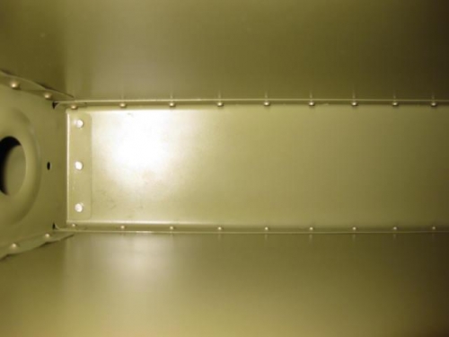 Just a little peek of the inside vertical stabilizer skin rivets that I bucked. Looks pretty good to me so now its time to close this puppy up and call it finished.