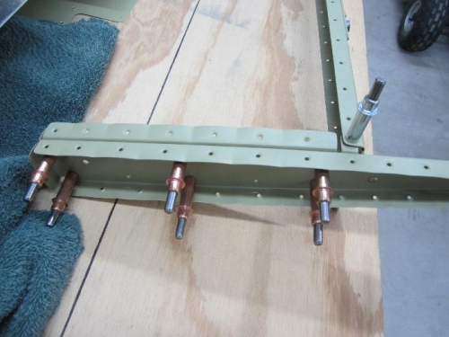 I did this different from the instructions like the right elevator. Instead of riveting the two ribs together first, I riveted the E-704 counterbalance rib to the E-702 spar then I riveted the E-713 end rib to the E-702 and finished off the rivets joining the two ribs together. I used my longeron yoke in the squeezer to set these. I had to work the yoke around the ribs without the top flat set on then once around I just put the flat set in and went to town and no the air was not connected while getting this set up.