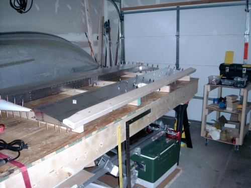 Fitted, drilled & clecoed spars to elevator skin. Also fitted elevator to stabilizer & drilled & clecoed piano hinge to elevator.