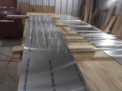 Drilled and clecoed "L" angles to left rear skin.