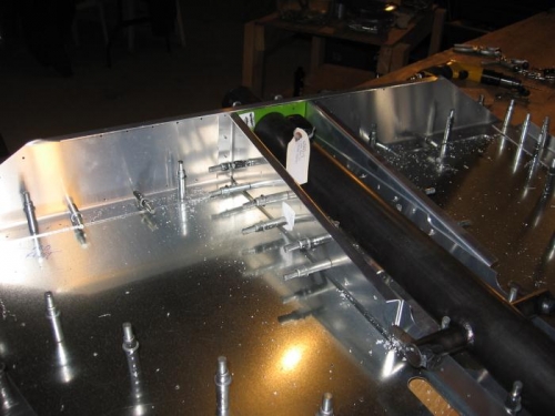 Pre drilled gear channel gussets to ear chanel and shelf. pre drilled Front doubler and gusset to shelf. Made cut out for nose landing gear strut in doubler Trimmed upper bearing per build instructions, Pre Drilled 4 mounting holes in bearing. Drilled all holes in firewall to size.