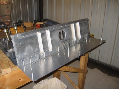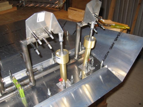 Finished drilling brake cylinder supports and inserted brake cylinders to ensure fit and travel. Predrilled main spar to cabin floor. predrilled cabin floor spar doubler to bottom of cabin floor per instructions and updated plans from SAIB CE_10_08.