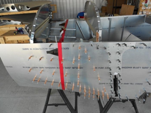 finished cutting and pre-drilling "L" angles to fuselagefront side skins per plans.
