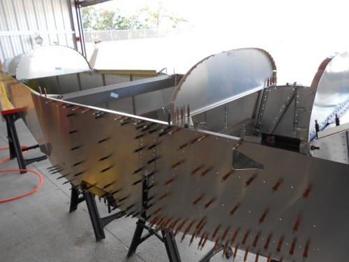 Pre-drilled both side skins to cabin floor skins. Then drilled to size for A4 rivits. Drilled part # 6B8-2 to part # 6B8-7 and drilled 5/8" holefor part # 6G2-2 for nose wheel strut bungie. *** NOTE: Bungie will not fit behind part # 6G2-2. the space between 6G2-2 and firewall is about 3mm too narrow for bungie. Will contact Zenith for solution and/or new parts.