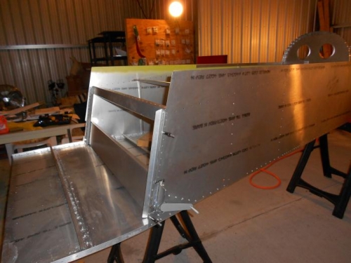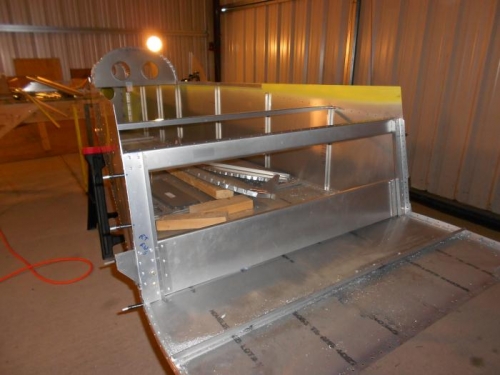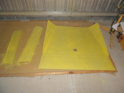 Continued deburring forward fuselage. coated cabin floor with Zinc Chromite for anti corrosion protection. used Cortec on rear thru spar parts for anti corrosion protection. assembled rear thru spar parts and bolted and riveted together and positiond back in rear fuselage and rivited in place.