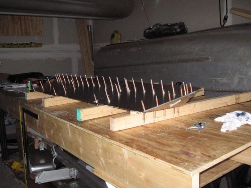 Laid out & shaped both left & right Control horns. positioned ribs in skin & drilled & clecoed in place.