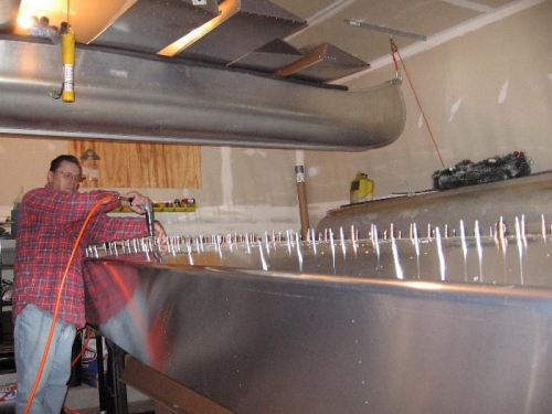 Aligned nose skin, drilled and clecoed tomain spar and nose ribs.
