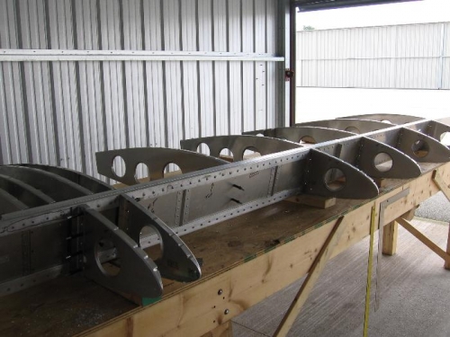 Lined up and drilled and clecoed rear ribs and nose ribs to left wing spar.