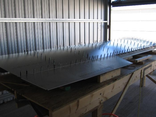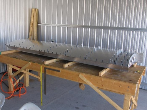 Drilled top rear skin to left wing assembly for A5 rivits.