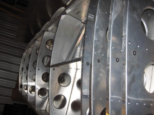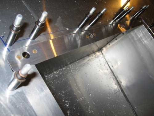 Drilled holes and inserted gromets for landing lights and positionlight/strobe wiring.