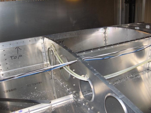 Cut holes in nose skin for fuel tanks vent tube, drain plug and filler cap.