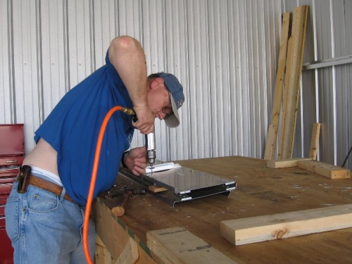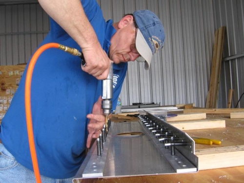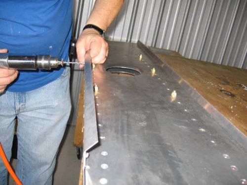 Drilled out and removed all of the A5 rivets from the main center spar. Removed bolts and sepaarated all parts. aligned angle doublers and started drilling upgrade parts to existing holes. EAA Tech Counselor, BillShain, came by hanger and reviewed the work done on the rignt wing.