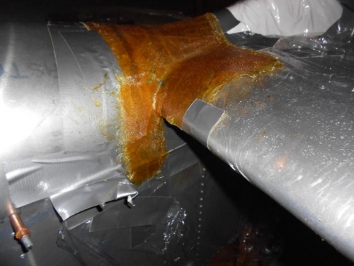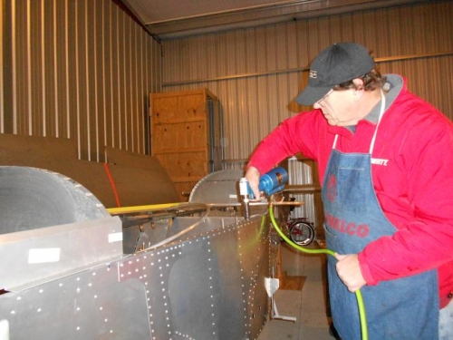 Chrismate did deburring while I continued working on the fiberglass fairing for the tail section.