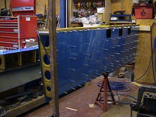 (2)This padded cradle eased assembly of the leading edge and fuel tank.