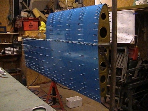 Fuel tank components clecoed together