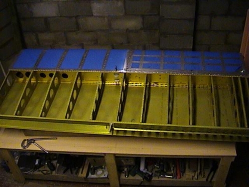Fitting the flap brace and aileron gap fairing.I made a bending brake from a heavy piece of ally channel, a couple of pieces of MDF and a length of piano hinge, to fold the trailing edge of the ailerons.