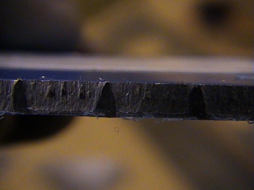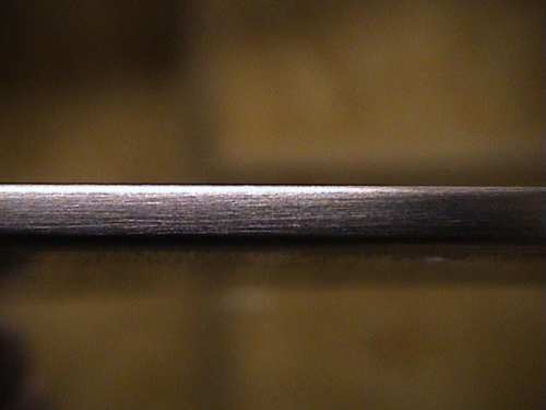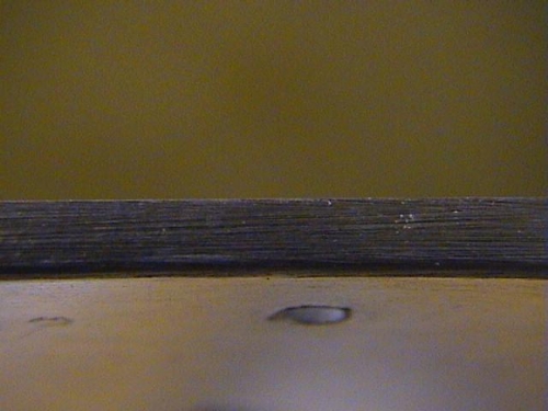 (1) This is a magnified view of the edge of the unprepared metal. A macro image like this shows why edge preparation is so important.(2) The same edge after belt sanding.(3) And finishing with 400 grit emery. To the naked eye it's smooth, but this macro shot shows that it still requires finer polishing.