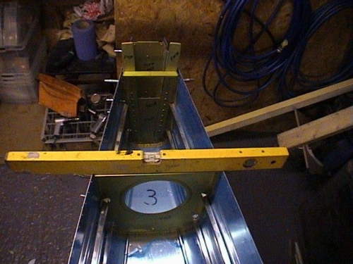Once the tailskins and bulkheads have been clecoed together, the tailcone needs sitting on trestles and checking for level and twist.