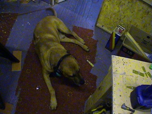 One of our ridgebacks often keeps me company, but he is not too keen on the noise.