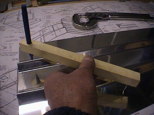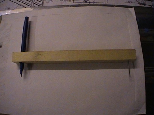 (1) Drill a hole in one end of a piece of wood to take a line marker, knock a pop rivet mandrel into the other end and you have no cost tool for marking the radius on the bulkhead