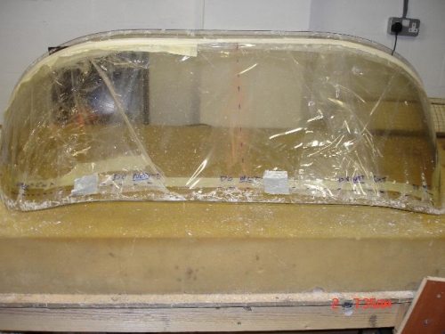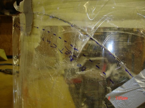 Only managed a couple of hours on the plane tonight, got the rear window cut to shape, cleaned up the edges and marked out the screw hole pattern on the aft top skin.