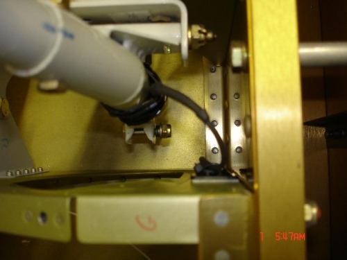 Wired the co-pilot stick, rather than drill a hole in the stick I wrapped some self amalgamating tape around the base of the stick and brought the cables up the front to the pivot point and then tie wrapped them in place. With full and free their is hardly any movement of the cable, the tape prevents any slip.
