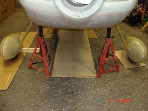 Fitted the right hand wheel pant tonight, then snaped a chalk line under the centre of the fuse and checked the pants for parallel, everythings good.