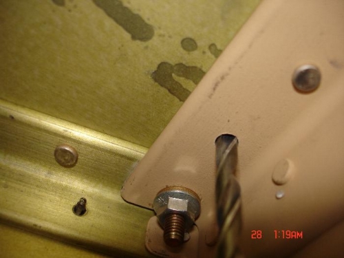My right angled drill attachement would not drill the inner bolts, and I have not been able to find one that will, not acurately anyway. Eventually took the plunge and marked and drilled a pilot through the top angle and used it as a guide for the lower hole. Another problem overcome.